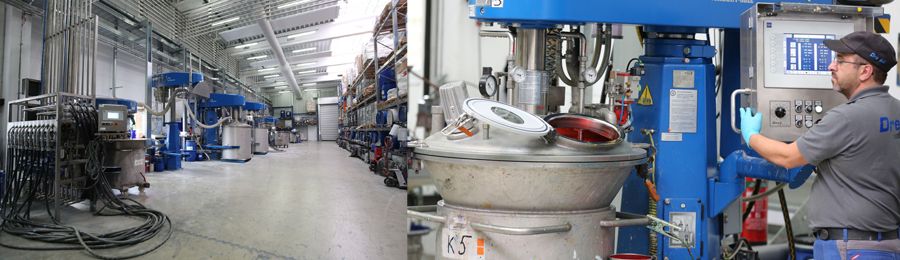 At our location in Bad Holzhausen, we use state-of-the-art manufacturing facilities to produce over 3,000 tons of industrial coatings for metals, plastics, foils, paper and glass. The production ensues in batch sizes ranging from 300 kg to 10,000 kg based on cutting-edge manufacturing processes to ensure that our customers always receive the best quality. The individual production areas are designed so as to enable the universal manufacture of solvent-based, solvent-free and water-thinnable paints and coating systems. The design of our plant allows us to keep the emission of solvents to a minimum, thus protecting the environment. A well trained team of specialists ensures a smooth production process on a daily basis, while providing for a professional manufacturing control. The traceability of each production batch is guaranteed by formulation records and retention samples.